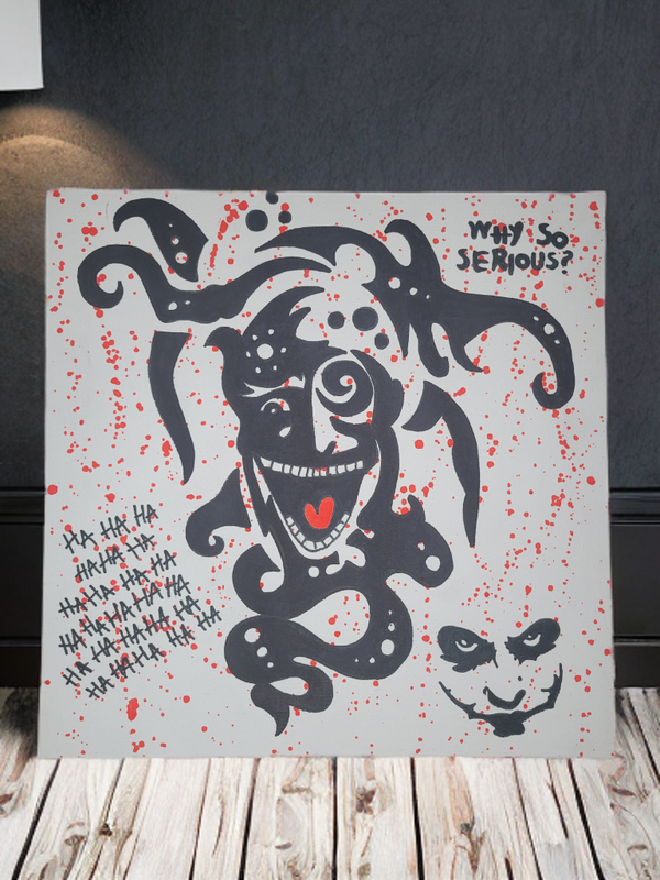 "Chaos du Rire" capture la dualité entre l’amusement et la folie, où le sourire masque une noirceur troublante. Les éclats de couleurs et les traits dynamiques traduisent une énergie incontrôlable, oscillant entre humour et chaos.